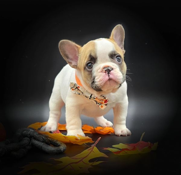 Meet Ribeye! He is the perfect example of a pied French bulldog. He is technically considered a coco fawn so his eyes may turn to a hazel or amber color. He loves to be held and spoiled. Probably because he's the only male in the litter 😂 He has been such a joy to have around. Ribeye will be ready for his new home Oct 23rd!
